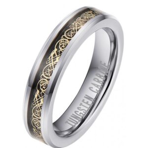 TUNGSTEN 4mm Gold Celtic Dragon Inlay Tungsten Carbide Wedding Band Ring Code: 767 $195.00