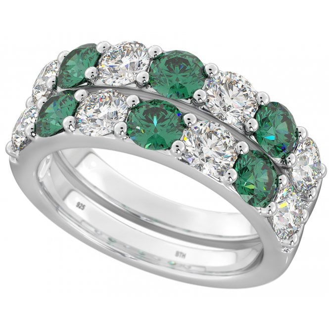 Emerald Cubic Zirconia Eternity Ring in 925 sterling silver Double Delight Emerald Cubic Zirconia Silver Ring Set Code: 446
