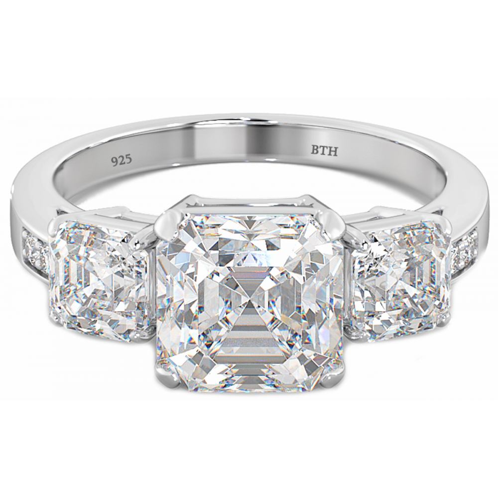 Shimmering 3-stone Asscher cut engagement ring