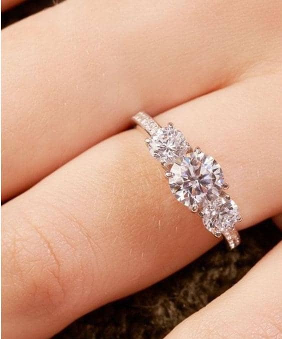 The main stone is framed by two smaller 4mm stones that nestle at its sides, depicting the three essential elements of love; passion, commitment, and union.