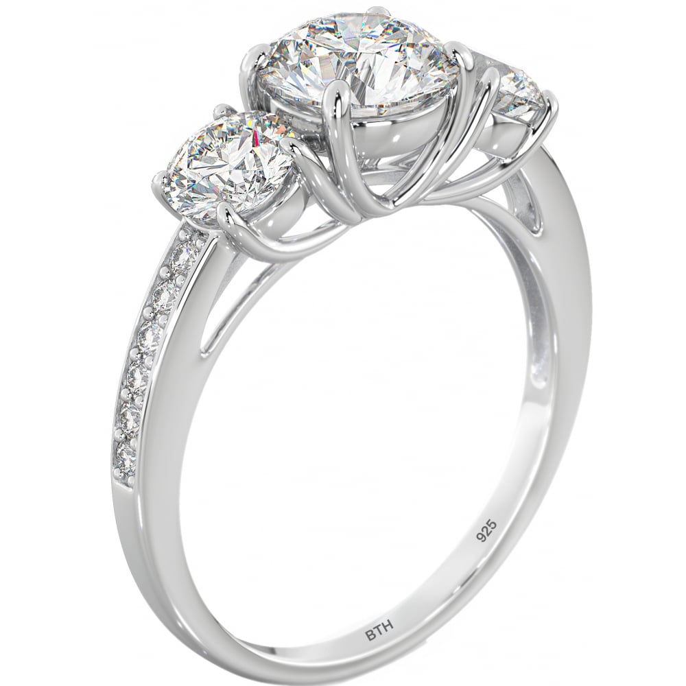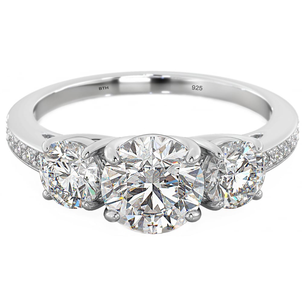 Ladies Sterling Silver Three STONE Cubic Zirconia Ring Temptations of Eden Engagement Ring Code: 301