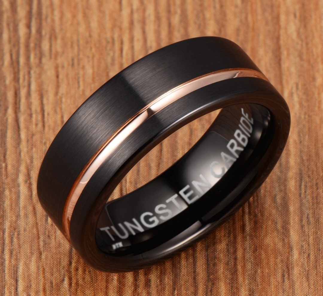 TUNGSTEN 8mm Tungsten Rose Gold And Black Men’s Ring Code: 547